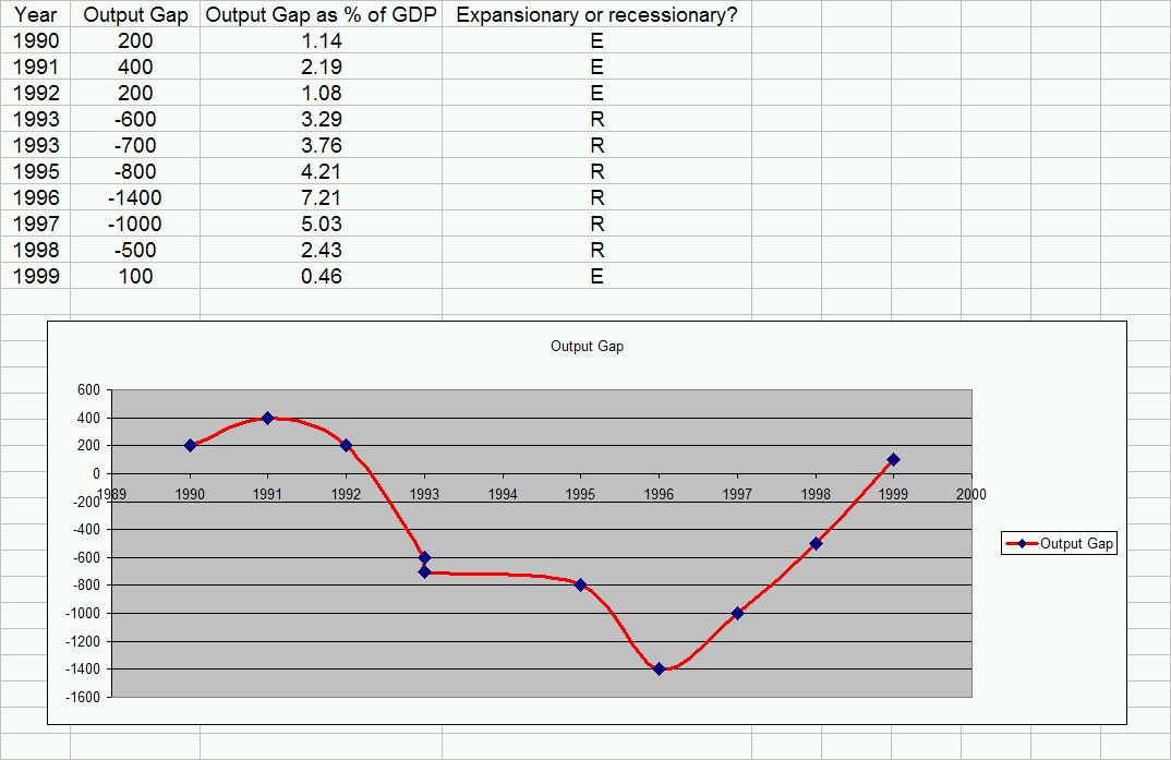 Put gap above in (a) over the real GDP to get these figures. Question asks for Output gap over Potential GDP, so all these are a bit wrong. See above for calculations. Thanks to Natalia Verance for finding this error.