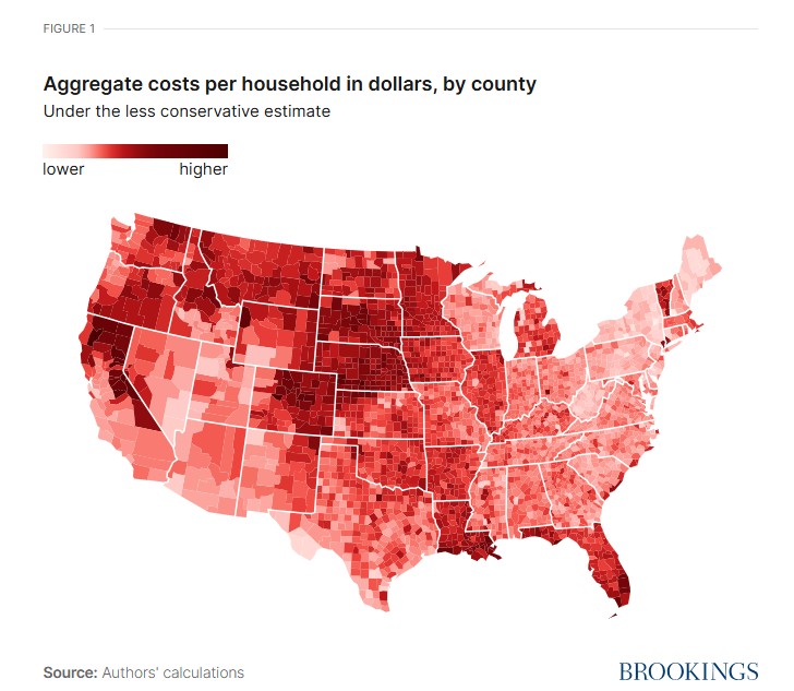 The authors don’t claim to have covered all the costs. But the analysis down to the county level brings home to localities and individuals how they are being affected.