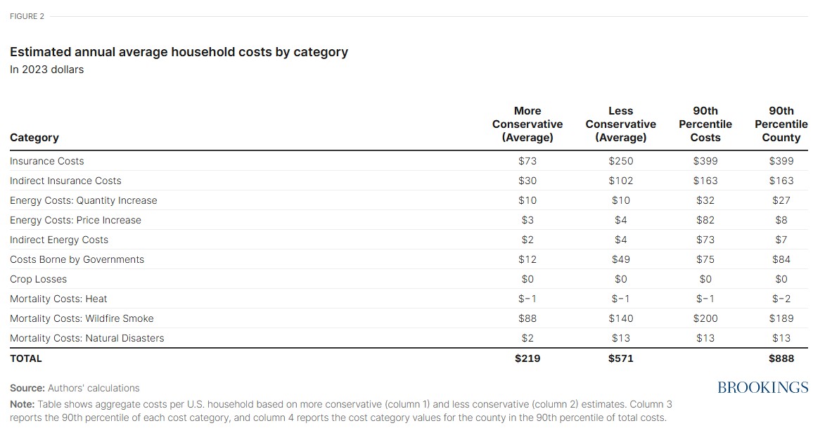 The mortality costs come from the effects of wildfire smoke and from natural disasters. The extra heat alone doesn’t create much cost. The extra deaths from heat are roughly offset by a reduction in deaths from cold weather.