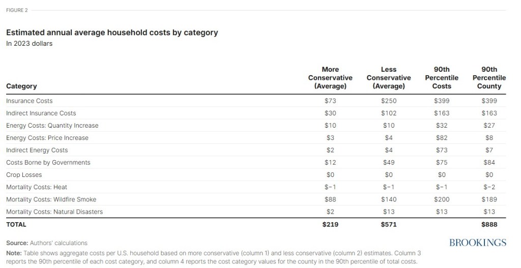 The Fall 2025 edition of Brookings Papers on Economic Activity contains this interesting paper which estimates the annual cost of climate events such as wildfires, air pollution, and warming weather. It’s no secret that climate change affects poorer members of society more. And we could guess that the West Coast, Gulf Coast, and Florida would see the largest effects.